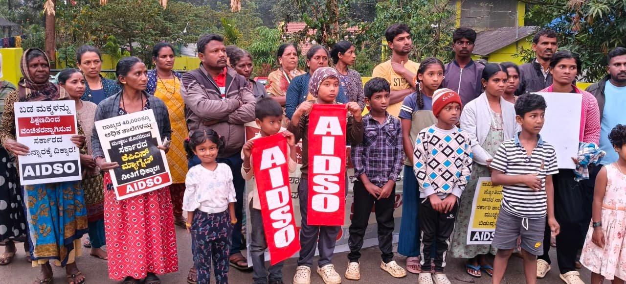 ಚಿಕ್ಕಮಗಳೂರು: ತಾಲೂಕಿನ ಬೊಂಬೈಲು ಸರ್ಕಾರಿ ಪ್ರಾಥಮಿಕ ಶಾಲೆಯನ್ನು ಬೇರೊಂದು ಶಾಲೆಗೆ ವಿಲೀನಗೊಳಿಸದಿರಲು ಒತ್ತಾಯಿಸಿ ಎಐಡಿಎಸ್ಓ ನೇತೃತ್ವದಲ್ಲಿ ವಿದ್ಯಾರ್ಥಿಗಳು ಹಾಗೂ ಪೋಷಕರ ಪ್ರತಿಭಟನೆ ನಡೆಸಿದರು.