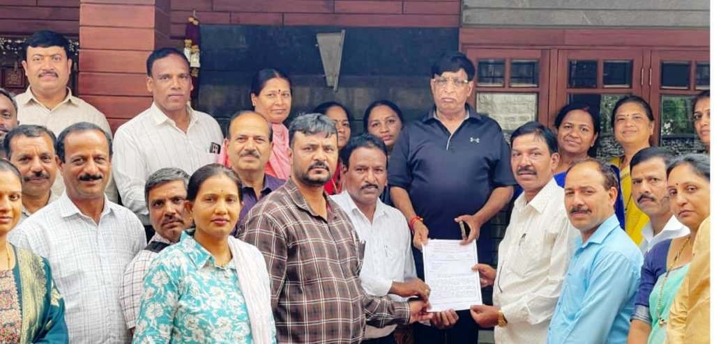 ಚಿಕ್ಕಮಗಳೂರು: ಪ್ರೌಢಶಾಲಾ ಹಂತದಲ್ಲಿ ತೃತೀಯ ಭಾಷೆ ಪರೀಕ್ಷೆಯಲ್ಲಿ ಎಸ್.ಎಸ್. ಎಲ್. ಸಿ. ವಿದ್ಯಾರ್ಥಿಗಳಿಗೆ ಗ್ರೇಡಿಂಗ್ ಕೈಬಿಟ್ಟು ಬದಲಾಗಿ ಫಲಿತಾಂಶದಲ್ಲಿ ಅಂಕಗಳನ್ನು ಪರಿಗಣಿಸುವಂತೆ ಆಗ್ರಹಿಸಿ ಜಿಲ್ಲಾ ಪ್ರೌಢಶಾಲಾ ಹಿಂದಿ ಭಾಷಾ ಶಿಕ್ಷಕರ ಸಂಘವು ವಿಧಾನ ಪರಿಷತ್ ಸದಸ್ಯ ಎಸ್.ಎಲ್.ಬೋಜೇಗೌಡ ಅವರಿಗೆ ಮನವಿ ಸಲ್ಲಿಸಿದರು.