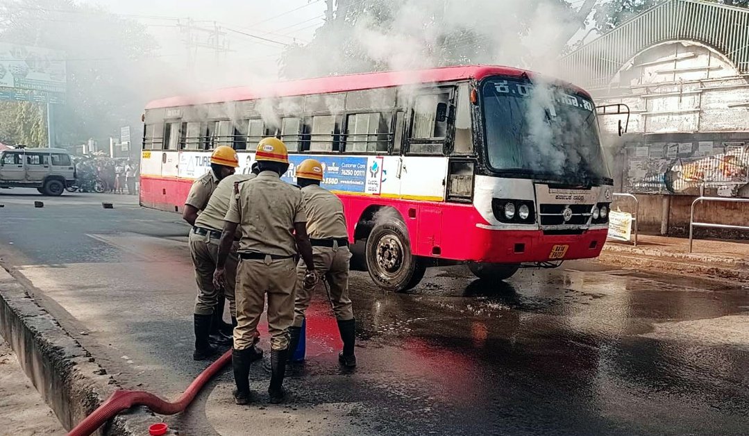 ಘಟನೆ ಗಮನಿಸಿದ ಪ್ರಯಾಣಿಕರು ತಕ್ಷಣವೇ ಬಸ್ಸಿನಿಂದ ಕೆಳಗಿಳಿದು ಸುರಕ್ಷಿತ ಸ್ಥಳಕ್ಕೆ ತೆರಳಿದ್ದಾರೆ.