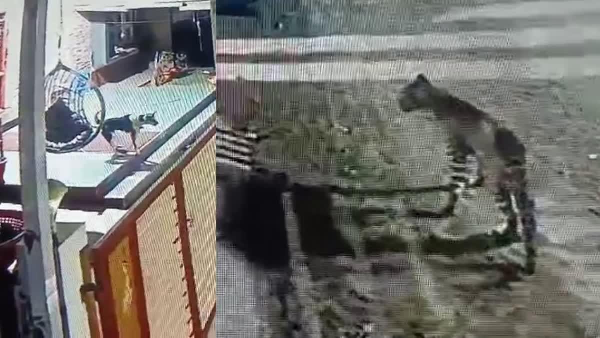 ಕಾಂಪೌಂಡ್ ಒಳಗಿದ್ದ ನಾಯಿಯನ್ನು ಬೇಟೆಯಾಡಲು ಚಿರತೆ ಹೊಂಚು ಹಾಕಿ ಕುಳಿತಿರುವುದು ಸಿಸಿ ಕ್ಯಾಮರಾದಲ್ಲಿ ಸ್ಪಷ್ಟವಾಗಿ ಸೆರೆಯಾಗಿದೆ.