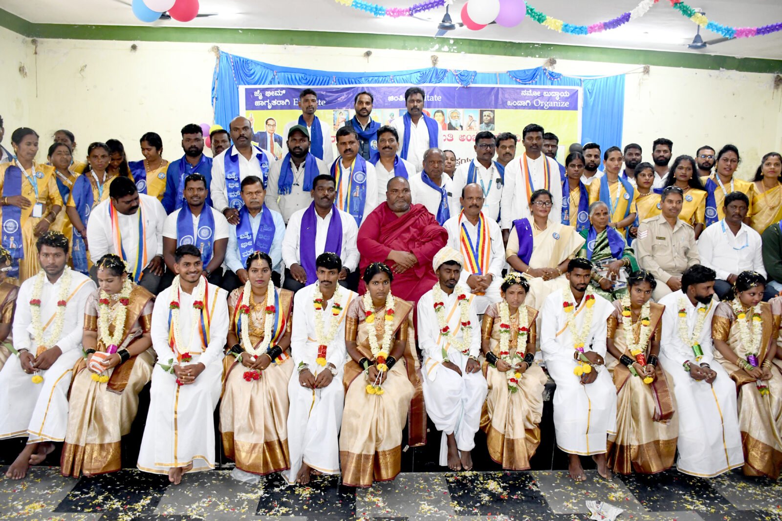 ನಗರದ ಅಂಬೇಡ್ಕರ್ ಸಮುದಾಯ ಭವನದಲ್ಲಿ ಗುರುವಾರ ಕರ್ನಾಟಕ ರಾಜ್ಯ ದಲಿತ ಸಂಘಟನಾ ಸಮಿತಿ ಅಂಬೇಡ್ಕರ್ ಧ್ವನಿ ವತಿಯಿಂದ ೧೩೫ನೇ ಅಂಬೇಡ್ಕರ್ ಜಯಂತಿ ಪ್ರಯುಕ್ತ ಆಯೋಜಿಸಿದ್ಧ ಉಚಿತ ಸಾಮೂಹಿಕ ವಿವಾಹ ಕಾರ್ಯಕ್ರಮದಲ್ಲಿ ನವಜೋಡಿಗಳಿಗೆ ಆರ್ಶೀವದಿಸಿ ಅವರು ಮಾತನಾಡಿದರು.