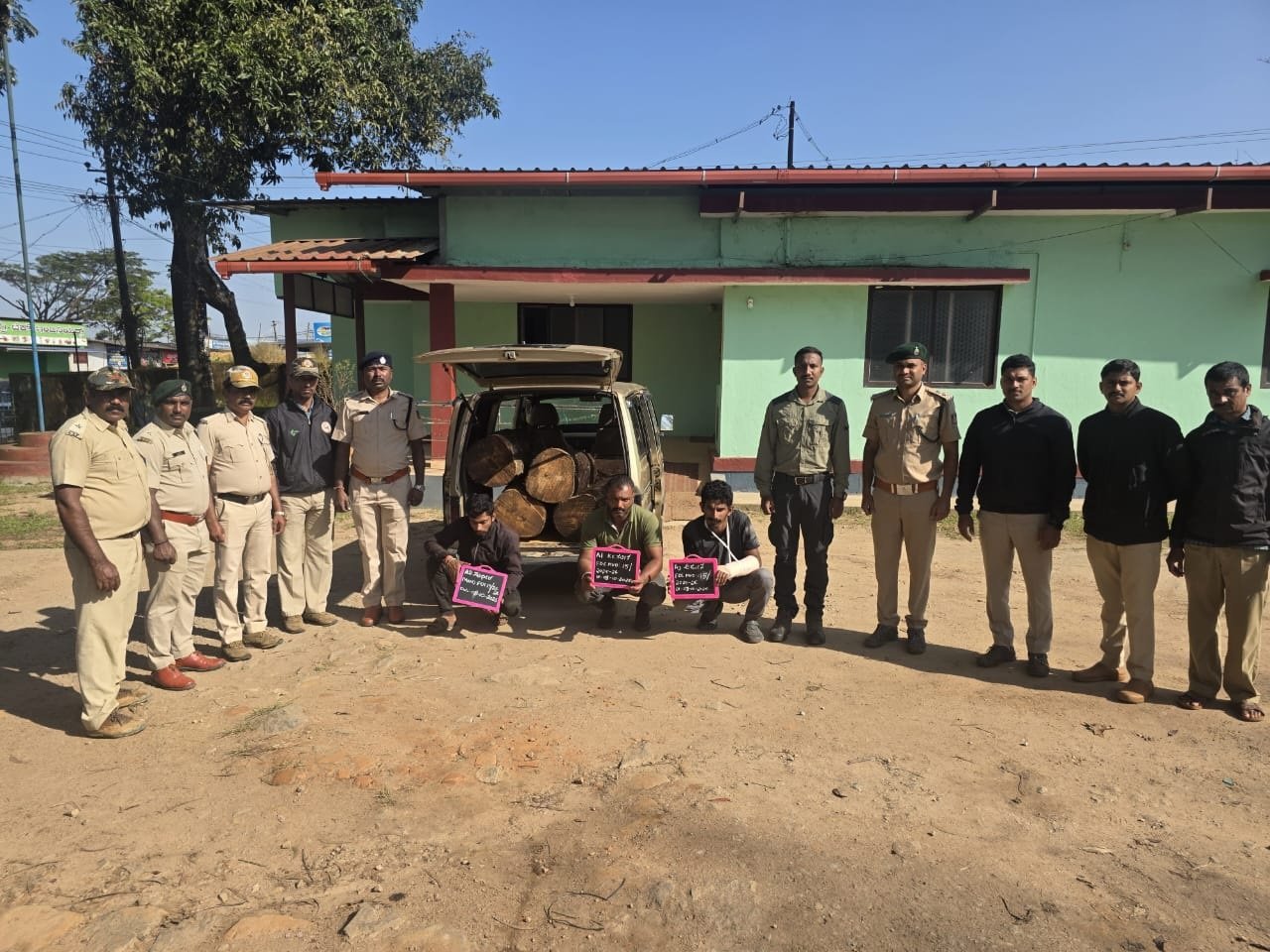 ಮೂಡಿಗೆರೆ ಪ್ರಾದೇಶಿಕ ಅರಣ್ಯ ವಲಯದ ಭಾರತಿಬೈಲು ಶಾಖೆಯ ಉಪ ವಲಯ ಅರಣ್ಯಾಧಿಕಾರಿ ಸುಹಾಸ್ ಅವರ ನೇತೃತ್ವದಲ್ಲಿ ಖಚಿತ ಮಾಹಿತಿ ಆಧರಿಸಿ ನಡೆಸಿದ ದಾಳಿಯಲ್ಲಿ, ಮಾರುತಿ ಓಮ್ನಿ ವಾಹನವನ್ನು ಬೆನ್ನಟ್ಟಿ ತಡೆದು ಪರಿಶೀಲನೆ ನಡೆಸಲಾಗಿದ್ದು, ಅದರಲ್ಲಿ ಅಕ್ರಮವಾಗಿ ಕತ್ತರಿಸಲಾದ ೦೫ ಸಾಗುವಾನಿ ತುಂಡುಗಳು ಪತ್ತೆಯಾದವು.